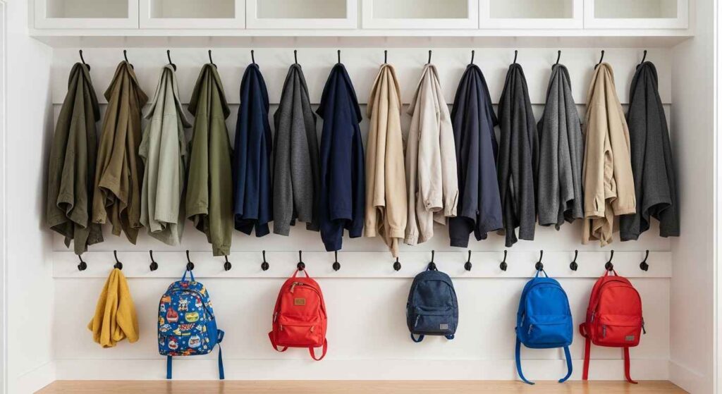 Hooks provide instant access to frequently used items. Install them at different heights to accommodate adults and children. Use sturdy hooks that can hold heavy winter coats without sagging.